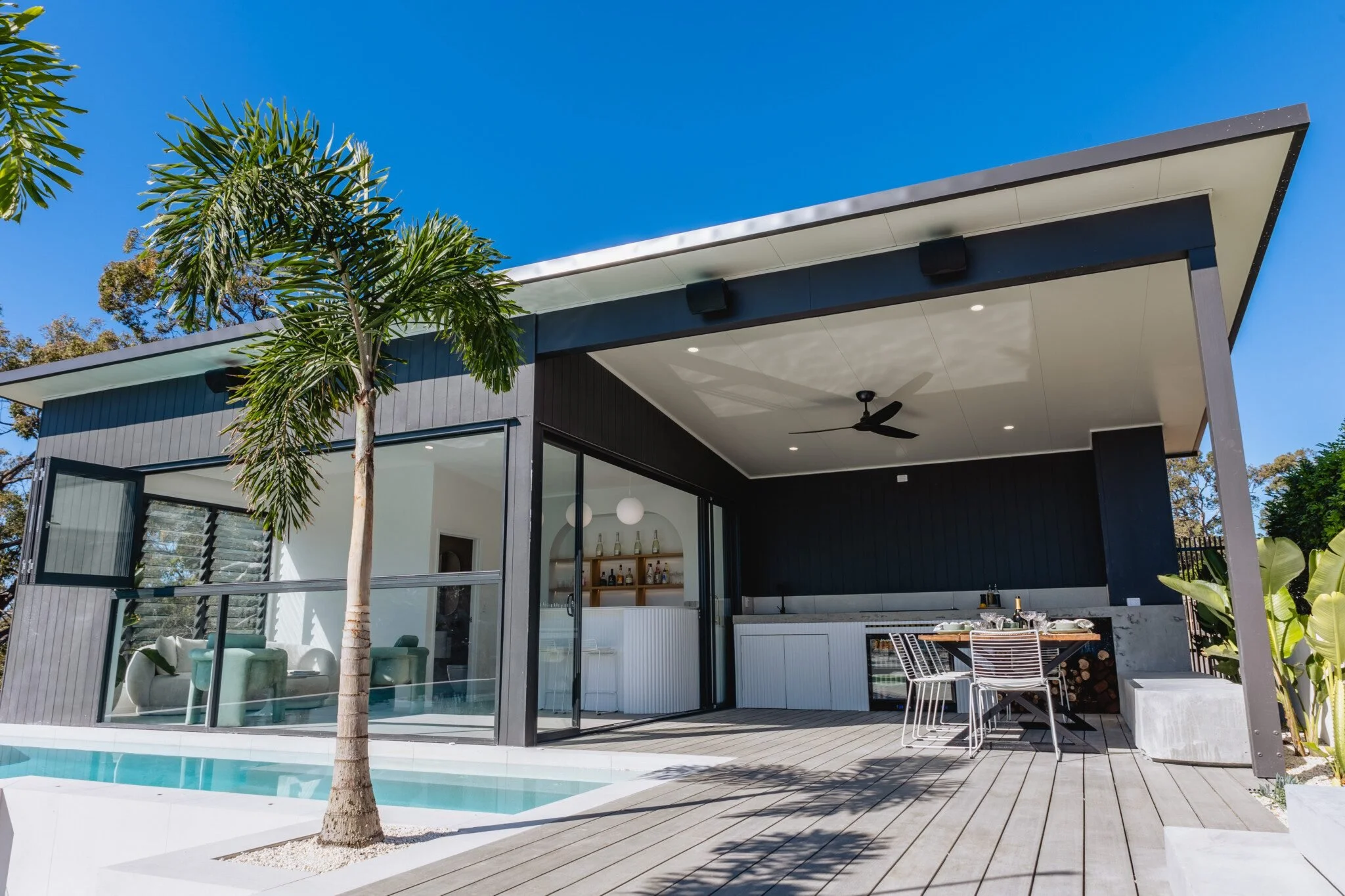 IBYA contains various entertaining spaces including outside dinning, an intimate lounge area, bar, pool with glass viewing window, an expansive deck, firepit and alfresco space.