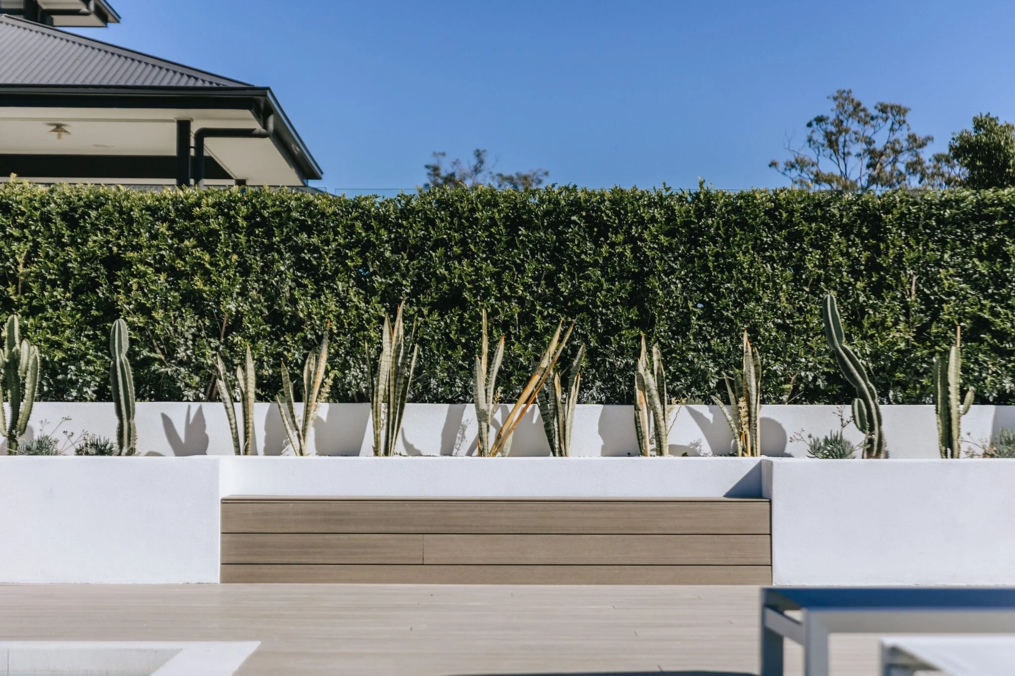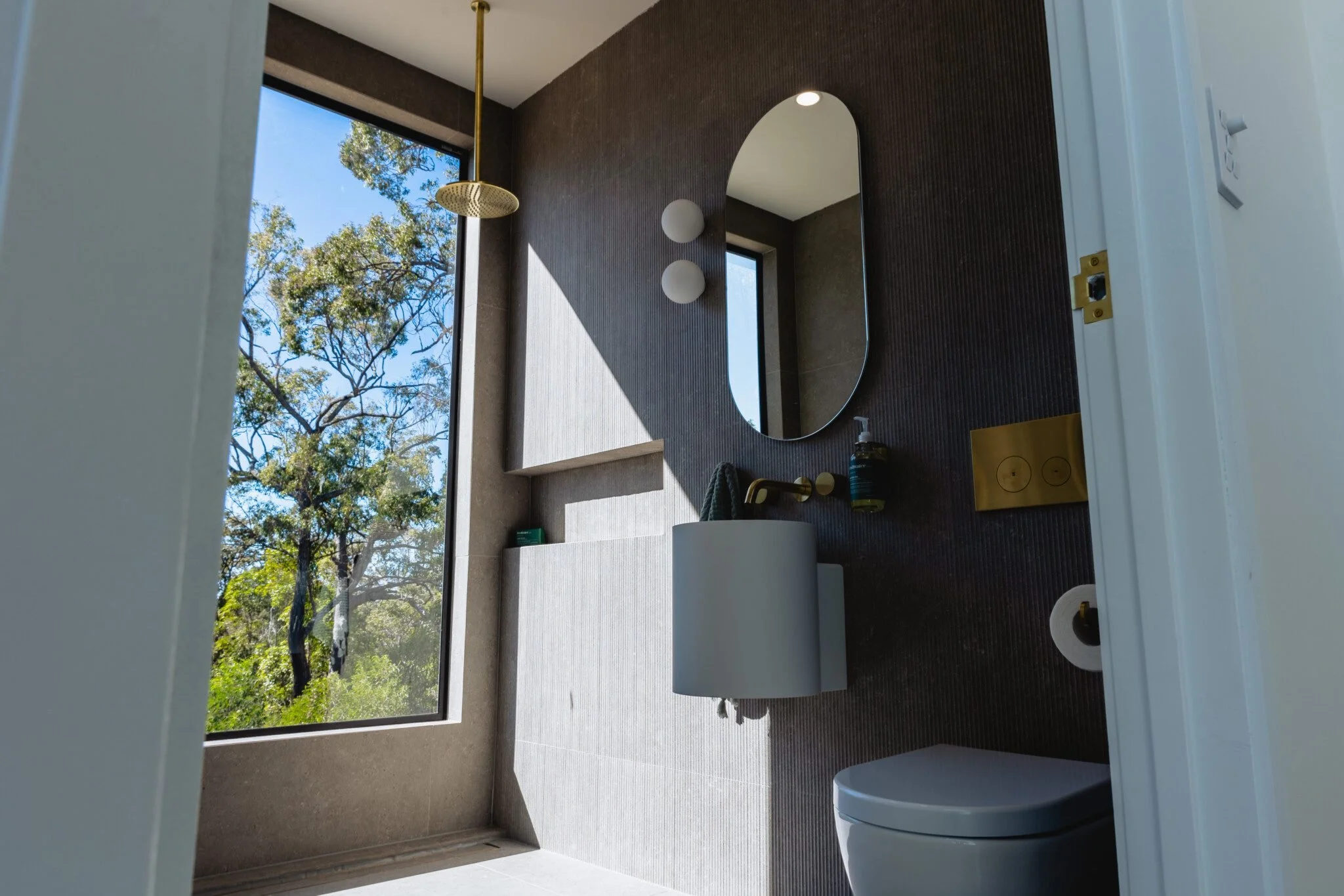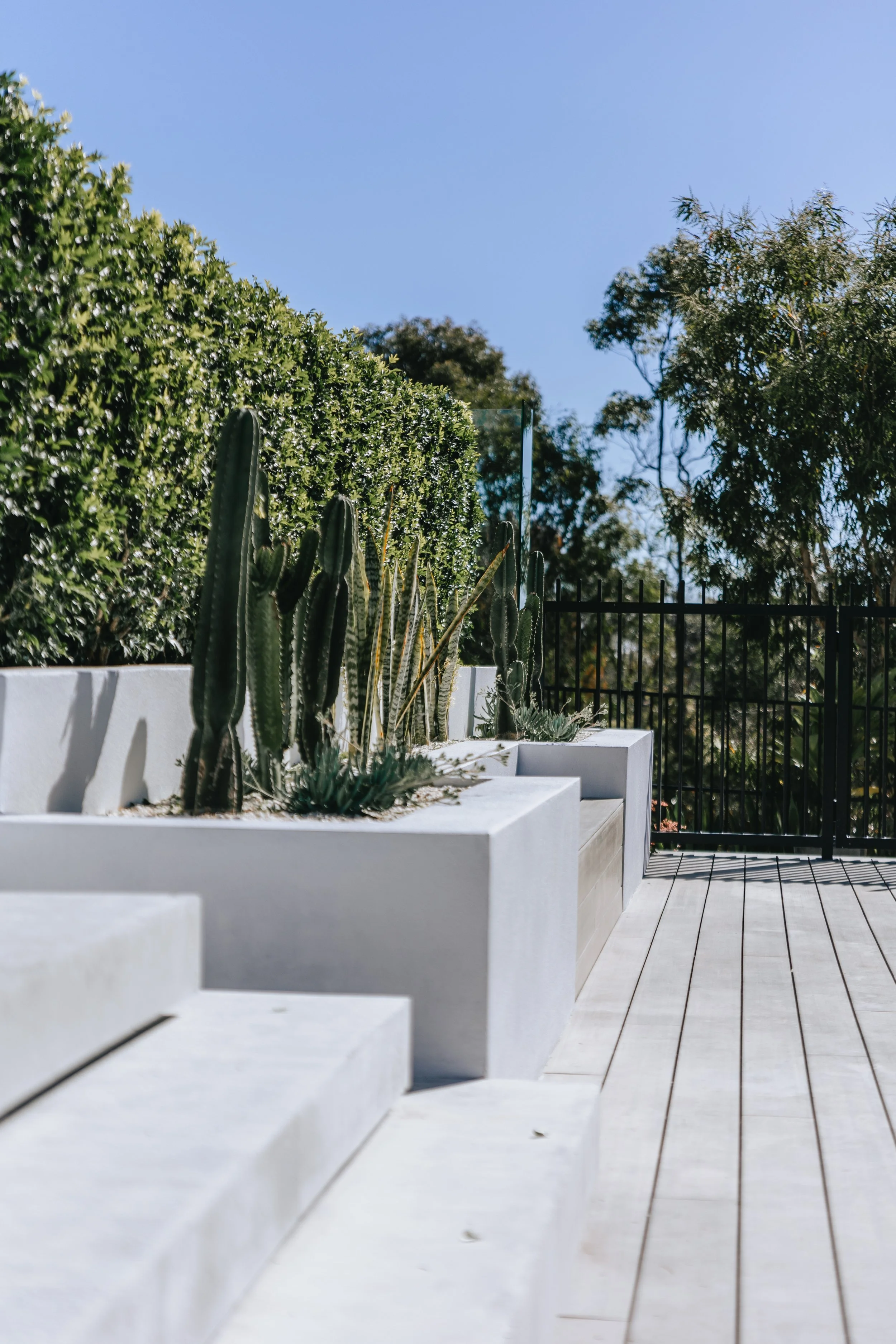 IBYA gave us the opportunity to work with modern and sleek finishes, that are adaptable for various staging and shot moments. This project required a lot of structural work to bring the project to life on a slopped block, but this is what makes every section of the dwelling have picture perfect views. This project included eco friendly finishes that will have limited ongoing maintenance. The black steel and white render provides a striking contrast. The custom timber and concrete elements create texture, but is softened by the beautiful styling and flowing curtains.